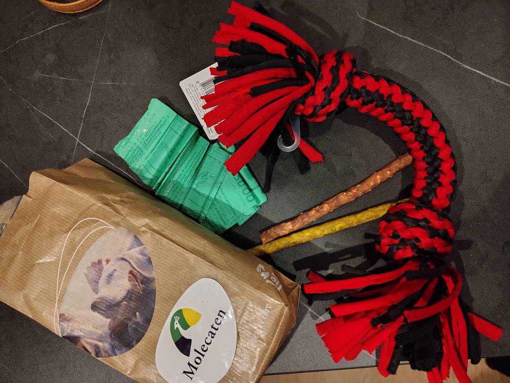 Het inchecken bij aankomst verliep vriendelijk en snel. Voor Dex was er zelfs nog een leuk cadeau! Een zakje met daarin een speeltje, iets lekkers en een paar poepzakjes.